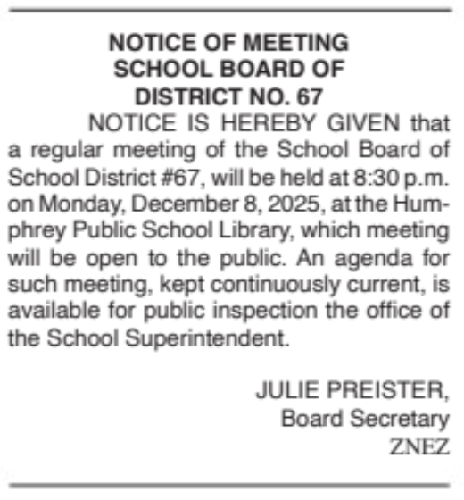 Notice of Budget Hearing and Budget Summary Notice of Special Hearing to Set Final Tax Request